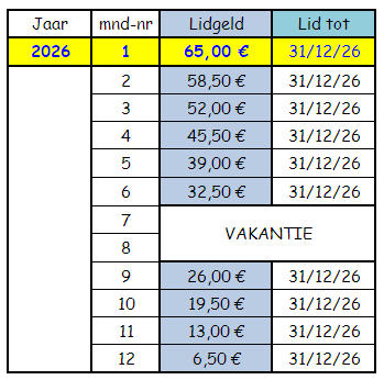 Lid wordenJJe bent steeds welkom als nieuw lid van onze badmintonclubVoor de som van 5 €, mag je 2 avonden uitproberen en nadien beslist U als je lid wenst te blijven of niet.Deze 5 euro dekt de administratie en zorgt er voor dat U verzekerd bent voor deze 2 avonden. Beslist U van lid te worden dan wordt het te-betalen-lidgeld verminderd met deze 5 € Een lidjaar in Badlove begint steeds op 1 januari en eindigt op 31 december van datzelfde jaar. We maken geen onderscheid tussen junioren en senioren.De sporthal is steeds gesloten tijdens de maanden juli en augustus.Junioren:Deze kunnen lid worden vanaf 16 jaar. Wij hebben geen specifieke jeugdwerking waardoor junioren moeten kunnen meespelen met de andere leden.Lidgeld:Het lidgeld is afnemend in tijd voor nieuwe leden volgens de tabel onderaan deze tekst.Hernieuwt men echter zijn lidmaatschap pas vanaf 1 maart van het nieuwe lidjaar, dan wordt men terug beschouwd als een nieuw lid met aangepast lidgeld. Let wel: dit geldt alleen maar als men tijdens de twee maanden vooraf niet heeft gespeeld!Daarnaast krijgt men van de mutualiteit jaarlijks een tegemoetkoming van (min) 15 € als men lid is van een sportclub. Wij bezorgen jou dit attest. Kortom een lidjaar kost jou maar 50 € voor 10 maanden.Je betaalt je lidgeld in de sporthal aan één van de bestuursleden of je stort dit bij voorkeur op de Badlove-rekening.Opgelet, indien men niet stort in eigen naam dan graag uw naam in de mededeling vermelden.•Iedereen is voorzien van een eigen racket en aangepast schoeisel (geen zwarte zolen). •Eens lid moet je zelf voor je shuttles zorgen.•Onze club is een recreatieve club en zodoende trachten we iedereen te motiveren om zoveel mogelijk met elkaar te spelen - maar dit is natuurlijk volledig vrijblijvend.•Om de sfeer te bevorderen organiseren we verschillende clubtornooien gedurende het jaar. Op ieder tornooi speel je elke wedstrijd steeds met een andere partner. Zodoende leer je andere spelers kennen wat de sfeer in de club bevordert.